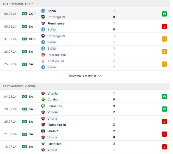 Xét về lịch sử đối đầu, Bahia có chút ưu thế hơn so với Vitoria khi trong 10 lần chạm trán gần nhất, Bahia đã giành 2 chiến thắng, 5 trận hòa và chỉ thua 3 trận. Dù vậy, các trận đấu giữa hai đội thường diễn ra rất căng thẳng và không dễ để đoán trước kết quả.