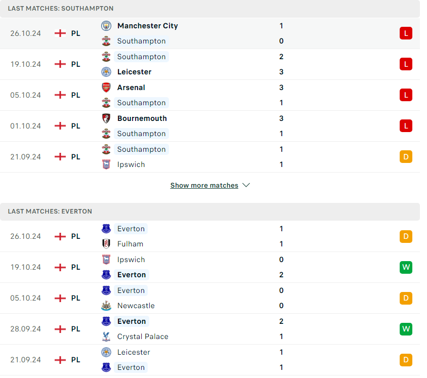 Ở vòng 10 Ngoại Hạng Anh, Southampton sẽ có màn đón tiếp Everton tại sân St. Mary’s. Cả hai đều đang cần điểm số quan trọng để thoát khỏi nhóm nguy hiểm, với Southampton đặt mục tiêu cải thiện tình hình tệ hại hiện tại trong cuộc đua trụ hạng.