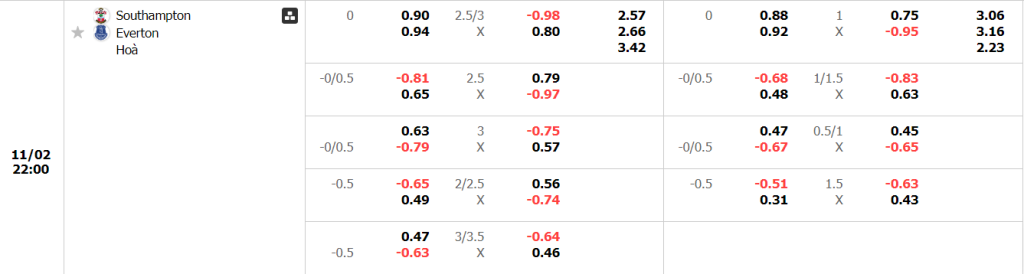 - Dự đoán tỉ số hiệp 1: Southampton 2-0 Everton
