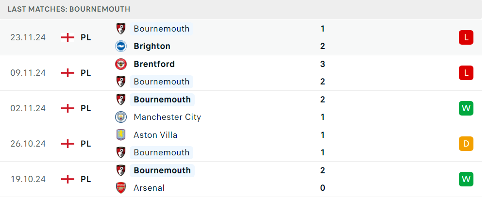 Phong độ gần đây Wolves vs Bournemouth